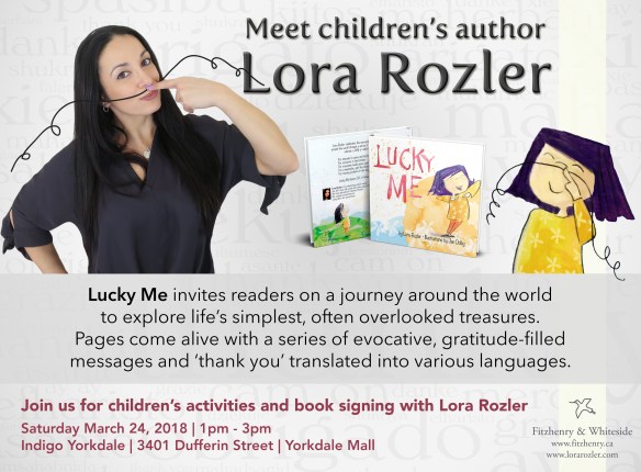 Join me Saturday March 24th between 1-3 pm at Indigo Yorkdale for children’s activities, book signing and giveaways.